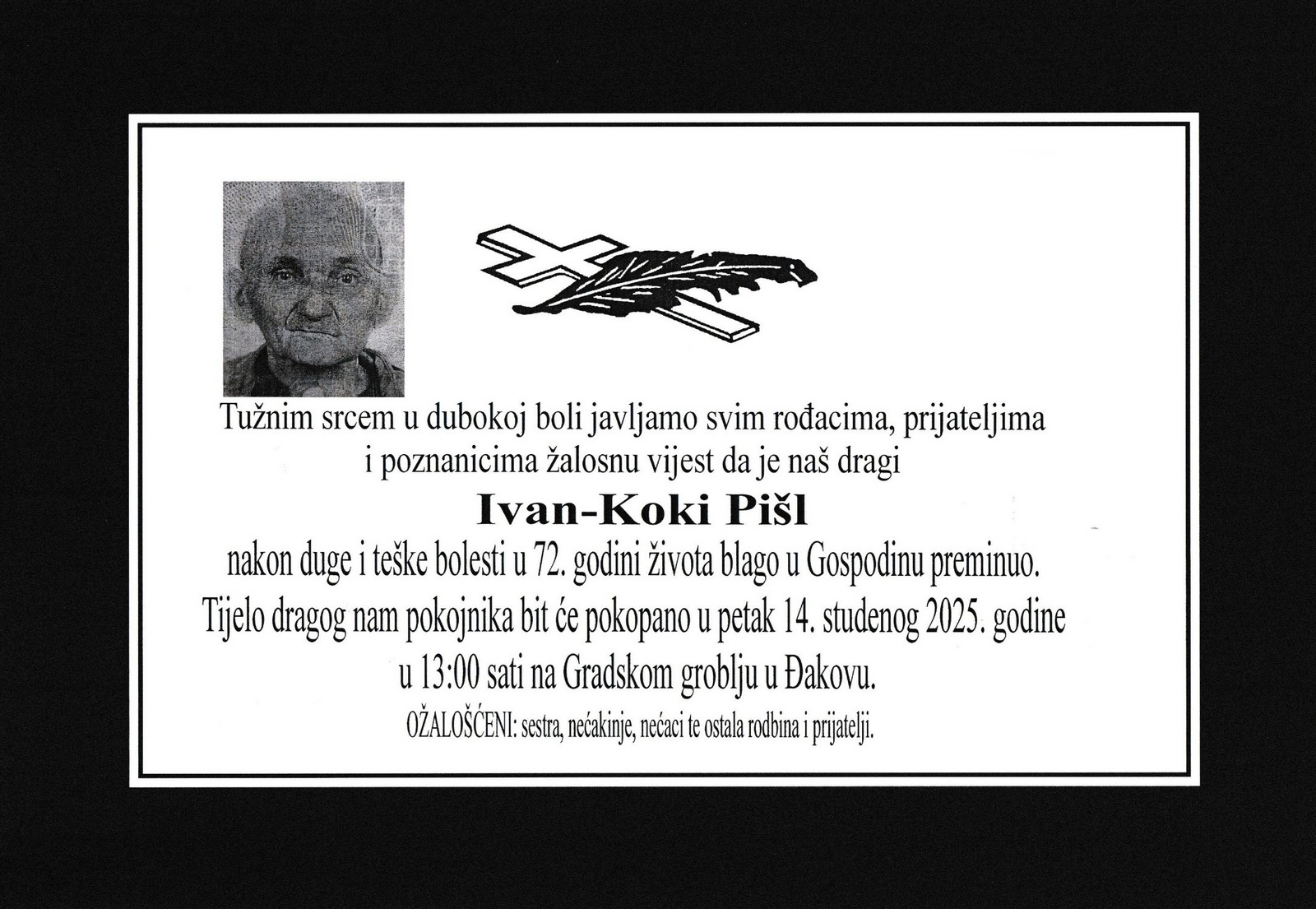 13 sati: IVAN (KOKI) PIŠL (71) osmrtnica