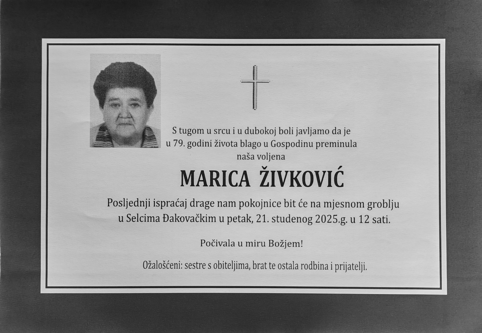 12 sati: MARICA ŽIVKOVIĆ (78) osmrtnica