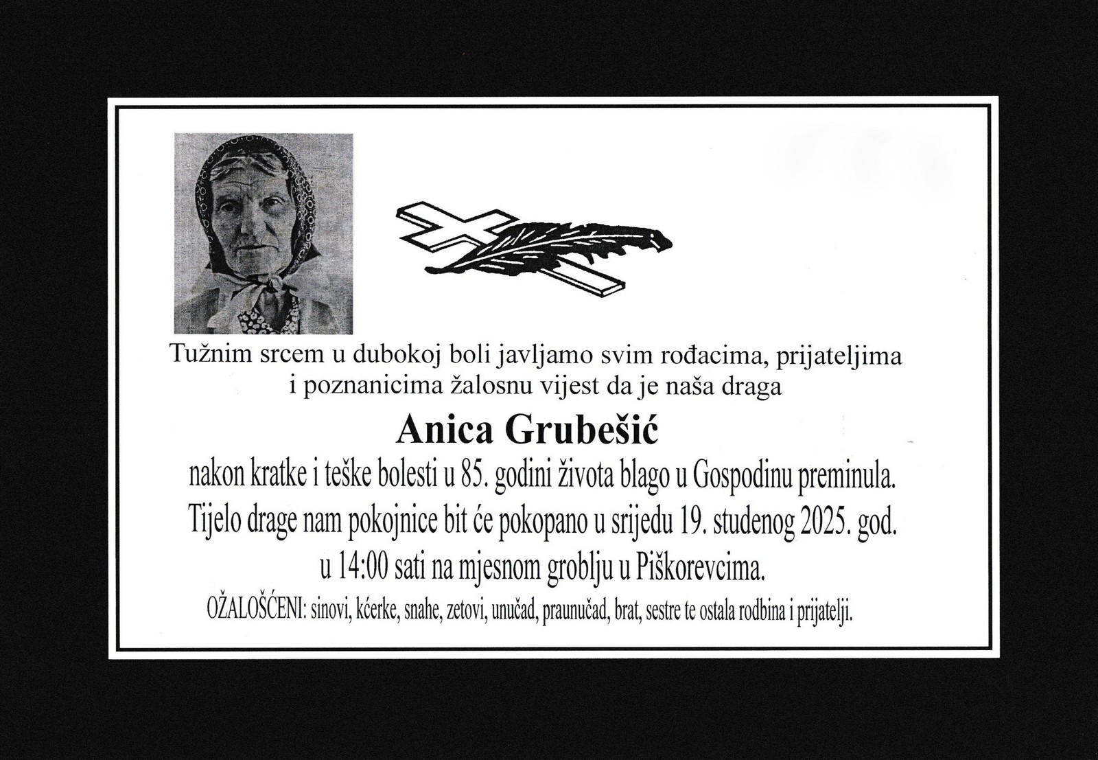 13 sati: ANICA BLAŽEVIĆ (80) osmrtnica