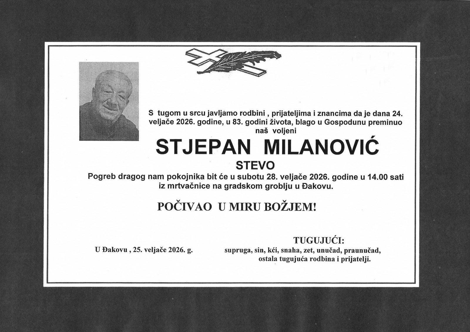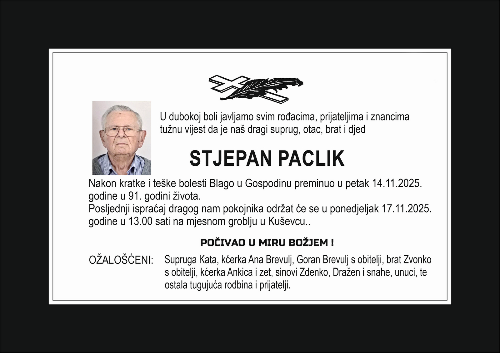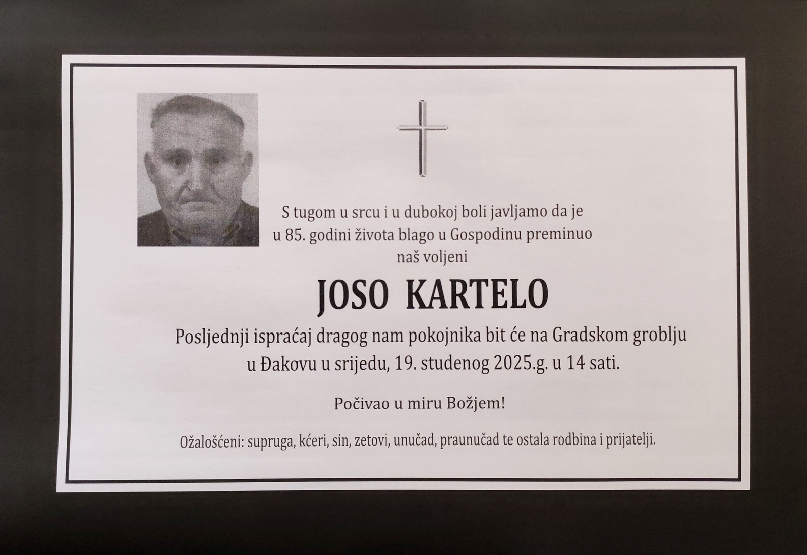 14 sati: STJEPAN JOZIPOVIĆ (88) osmrtnica