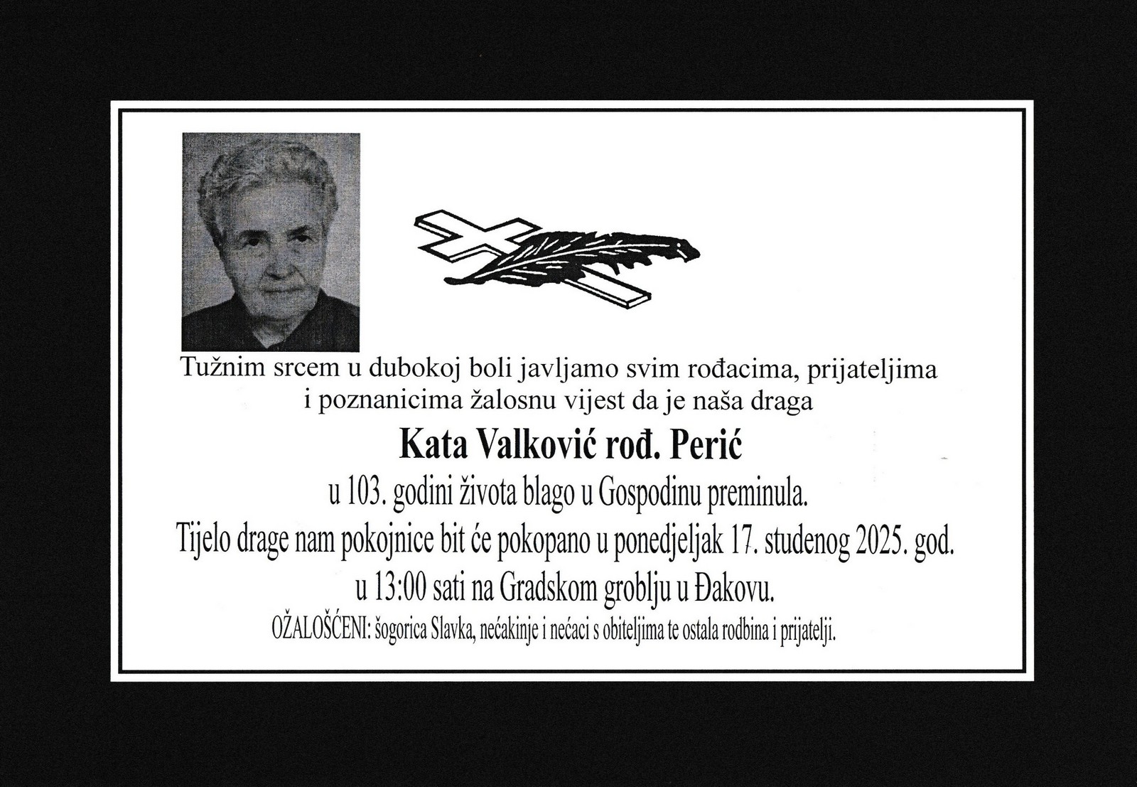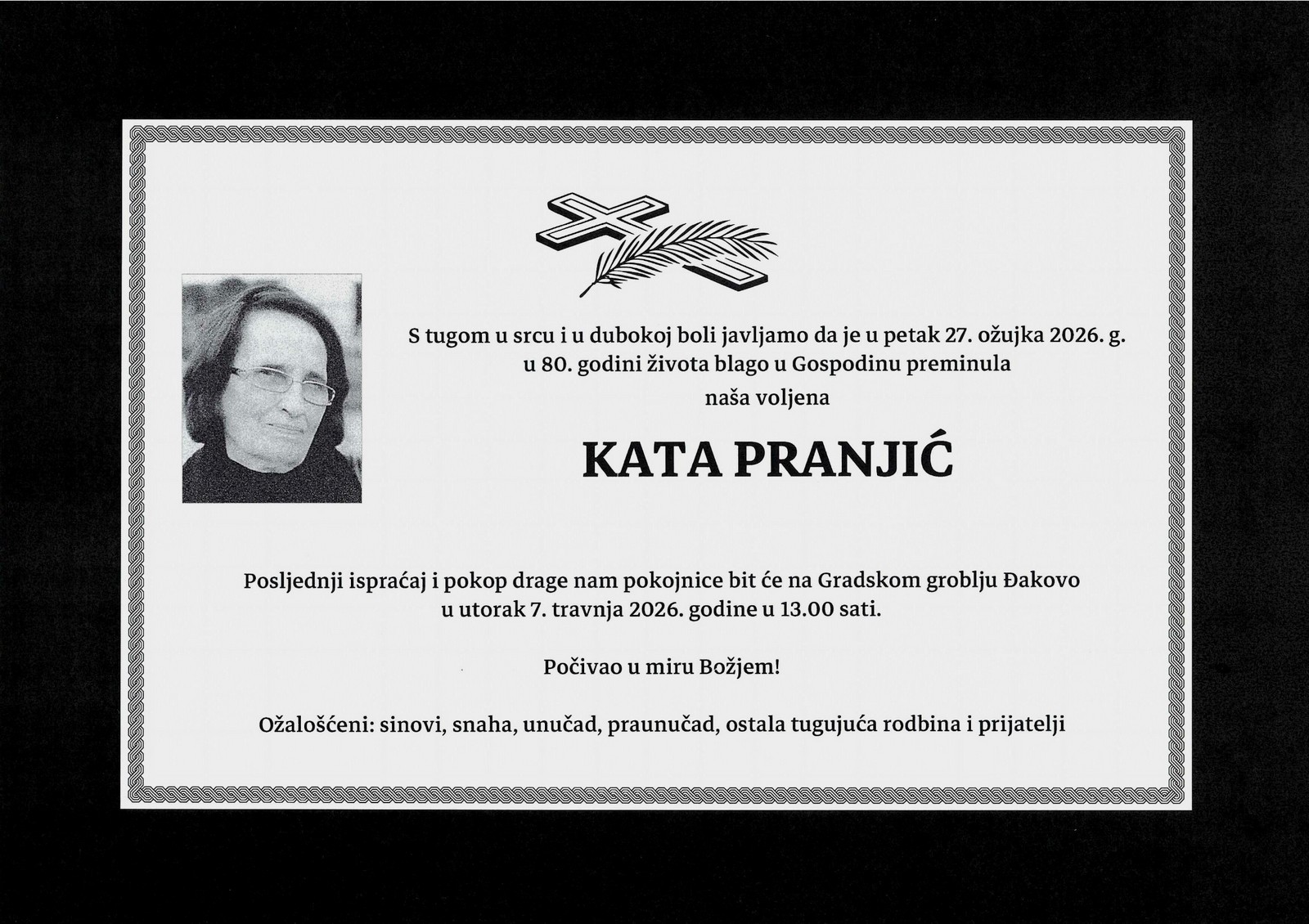 14 sati: KATA ĆURIĆ (88) osmrtnica