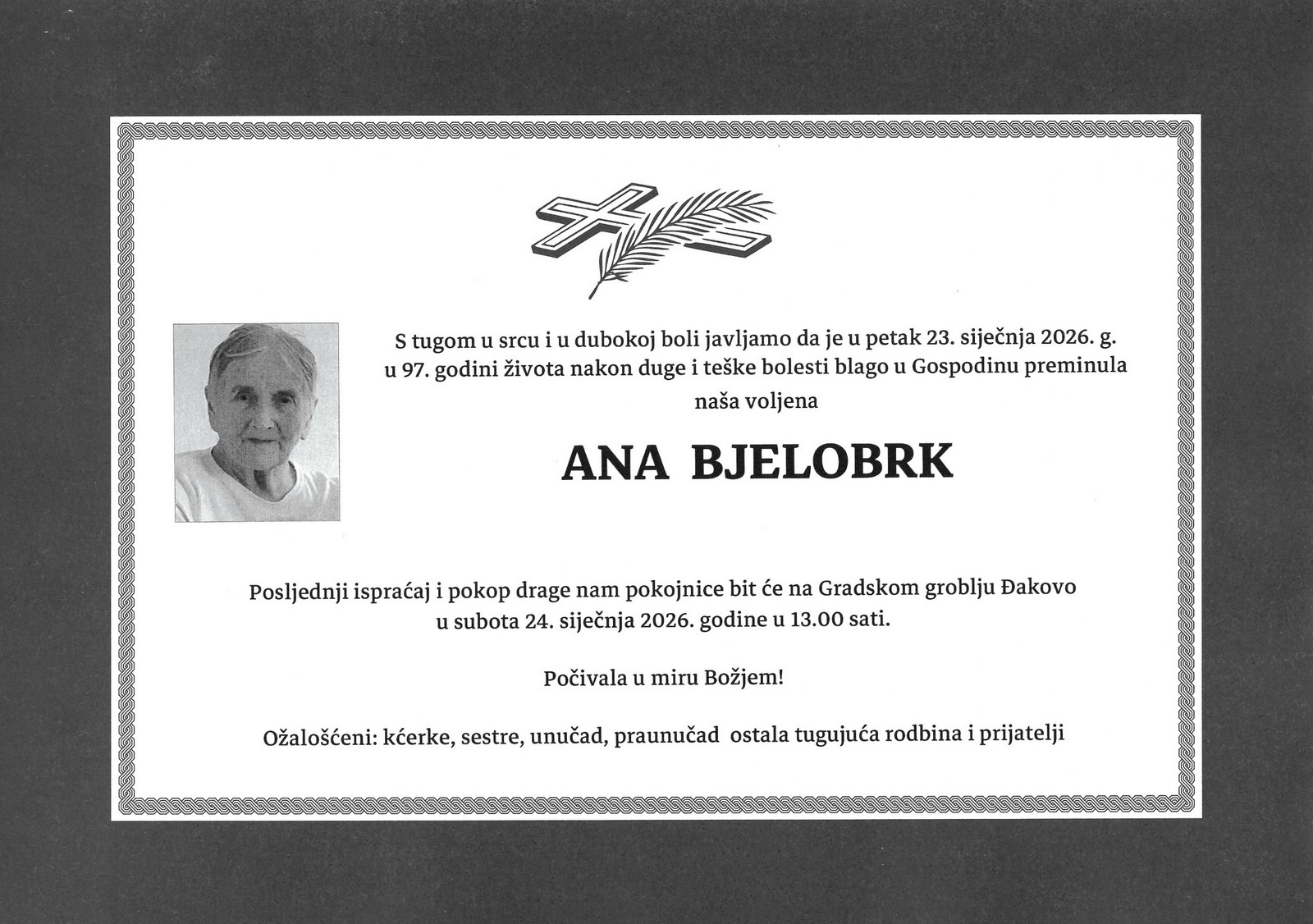 13 sati: ANA BJELOBRK (96) osmrtnica