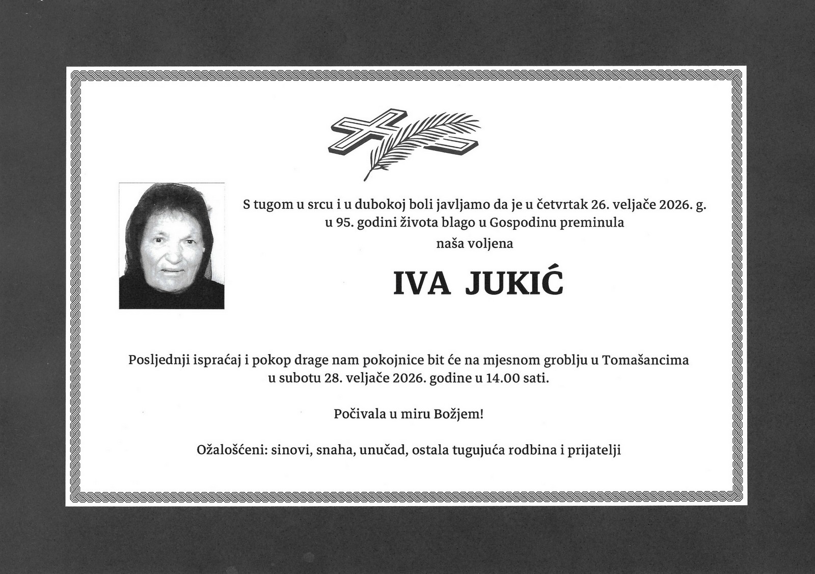 14 sati: JELA OMAZIĆ (84) osmrtnica