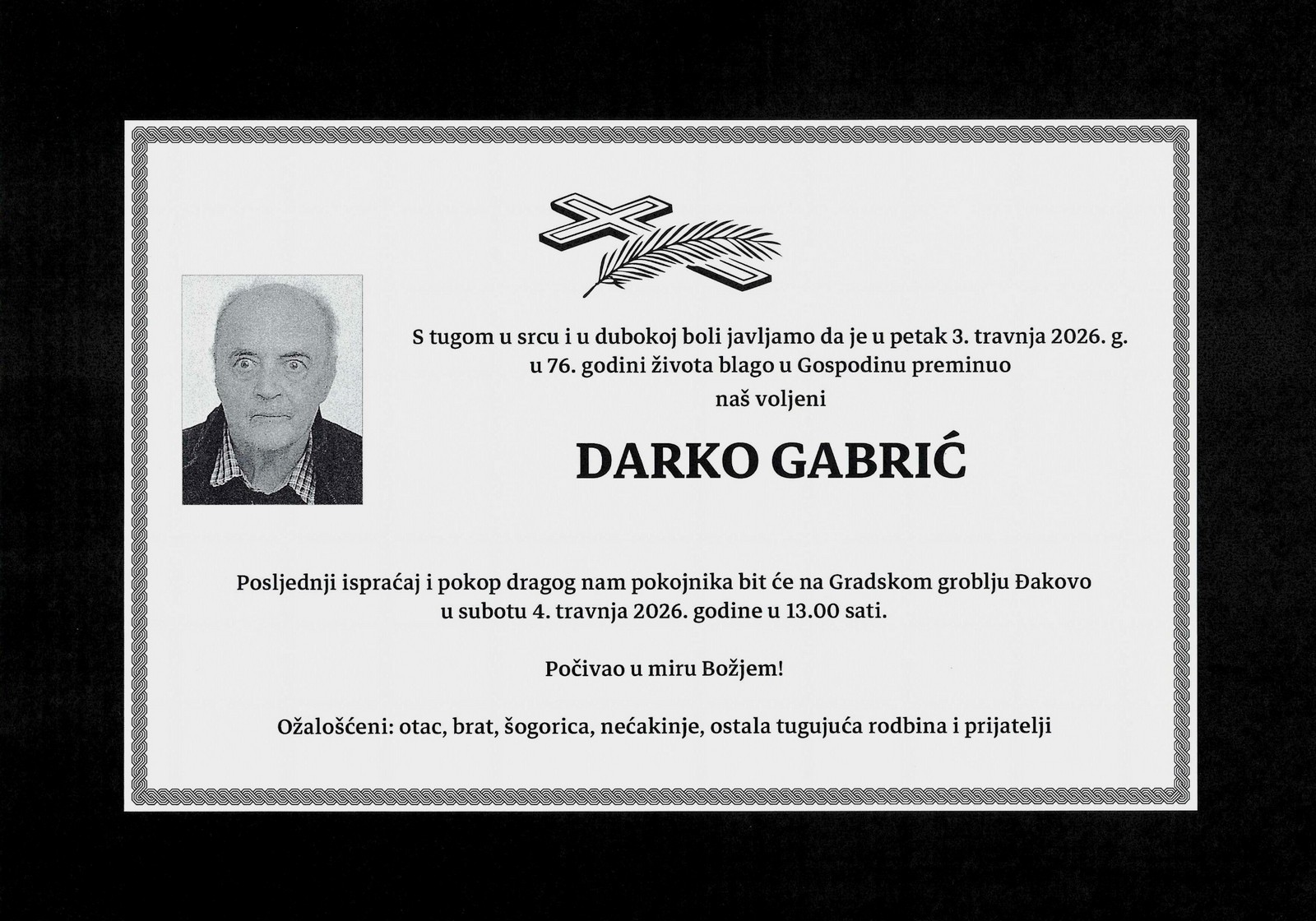14 sati: MARIJAN GORJANAC (82) osmrtnica