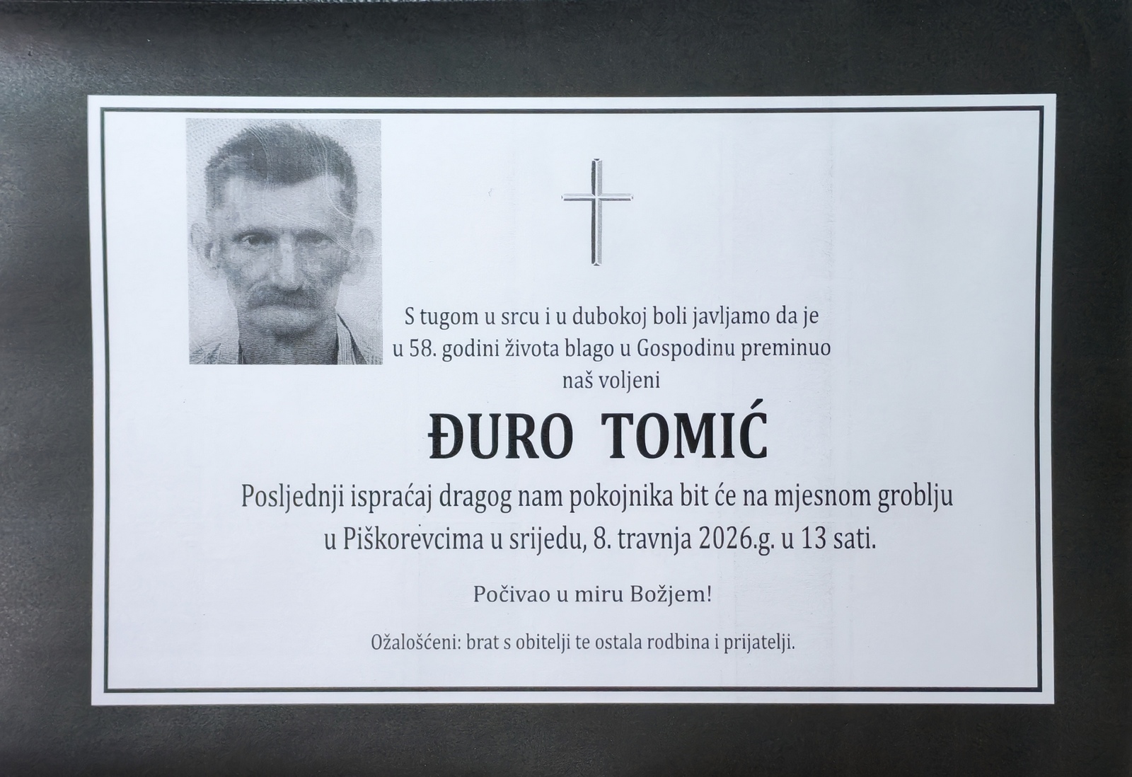 13 sati: ĐURO TOMIĆ (57) osmrtnica