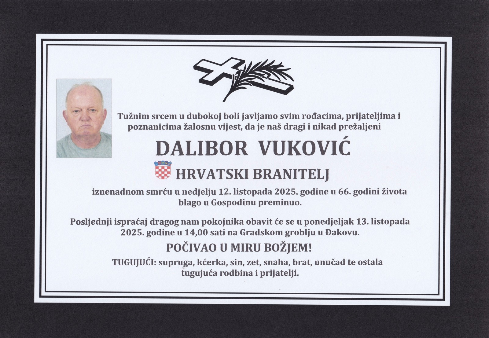 14 sati: DALIBOR VUKOVIĆ (65) osmrtnica