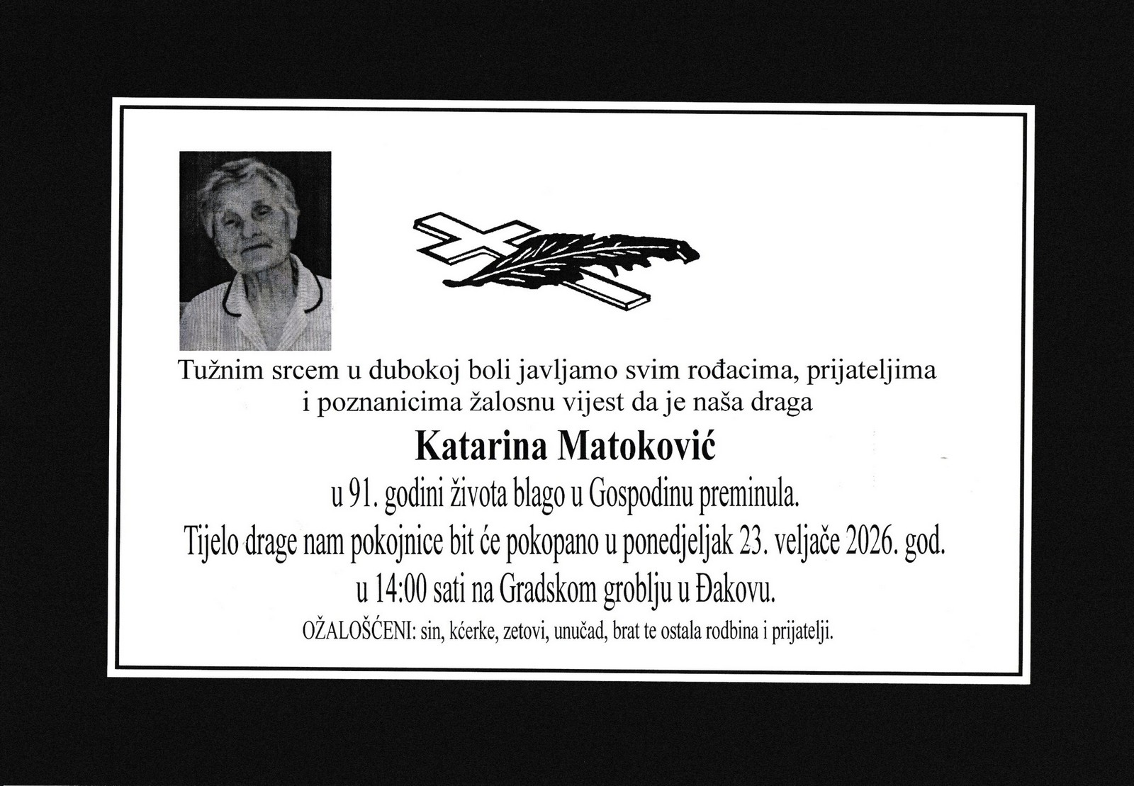 14 sati: KATARINA MATOKOVIĆ (90) osmrtnica