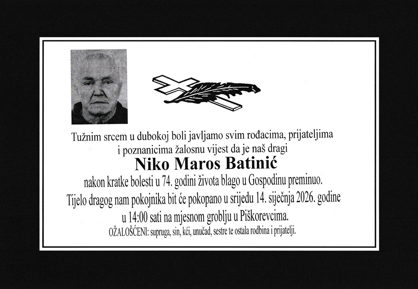 14 sati: NIKO MAROS BATINIC (73) osmrtnica