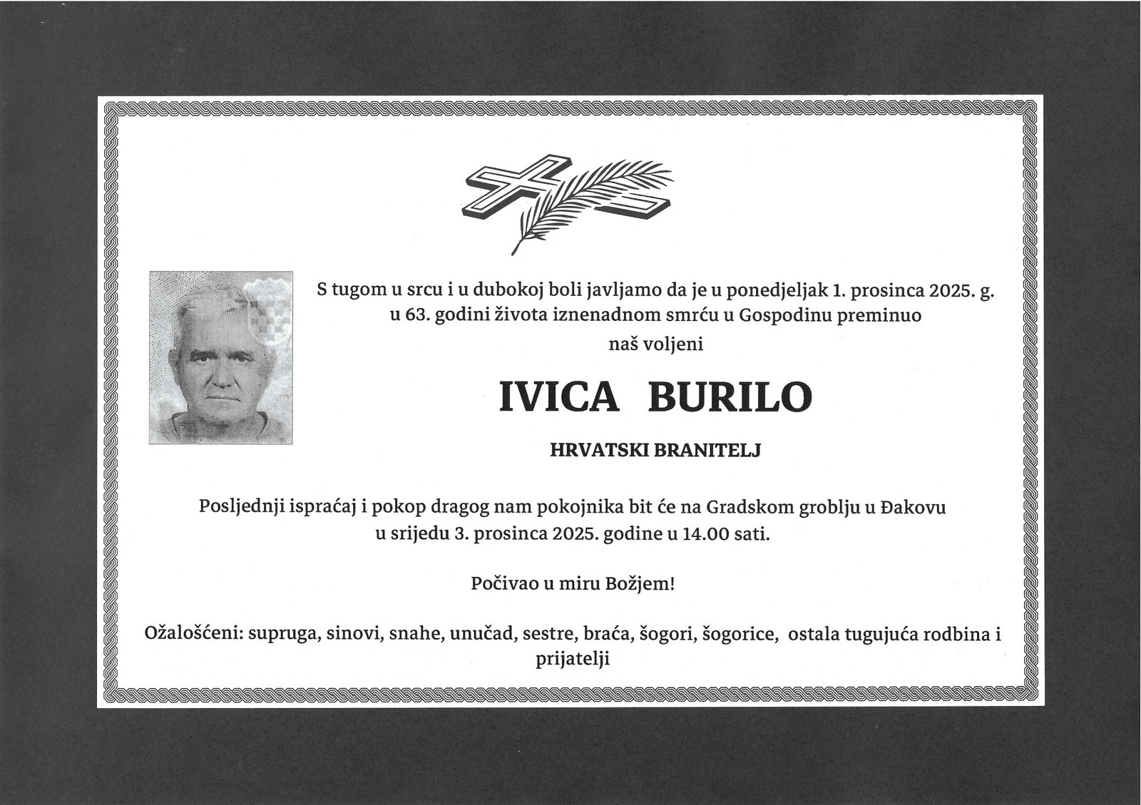 14 sati: IVICA BURILO (62) osmrtnica