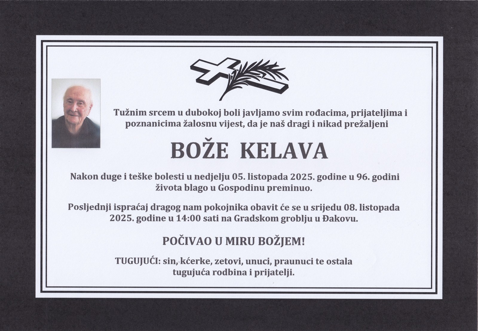 14 sati: BOŽE KELAVA (95) osmrtnica