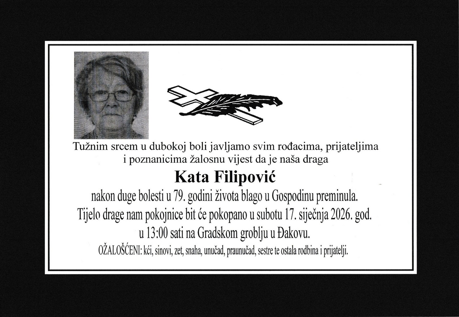 13 sati: KATA FILIPOVIĆ (78) osmrtnica