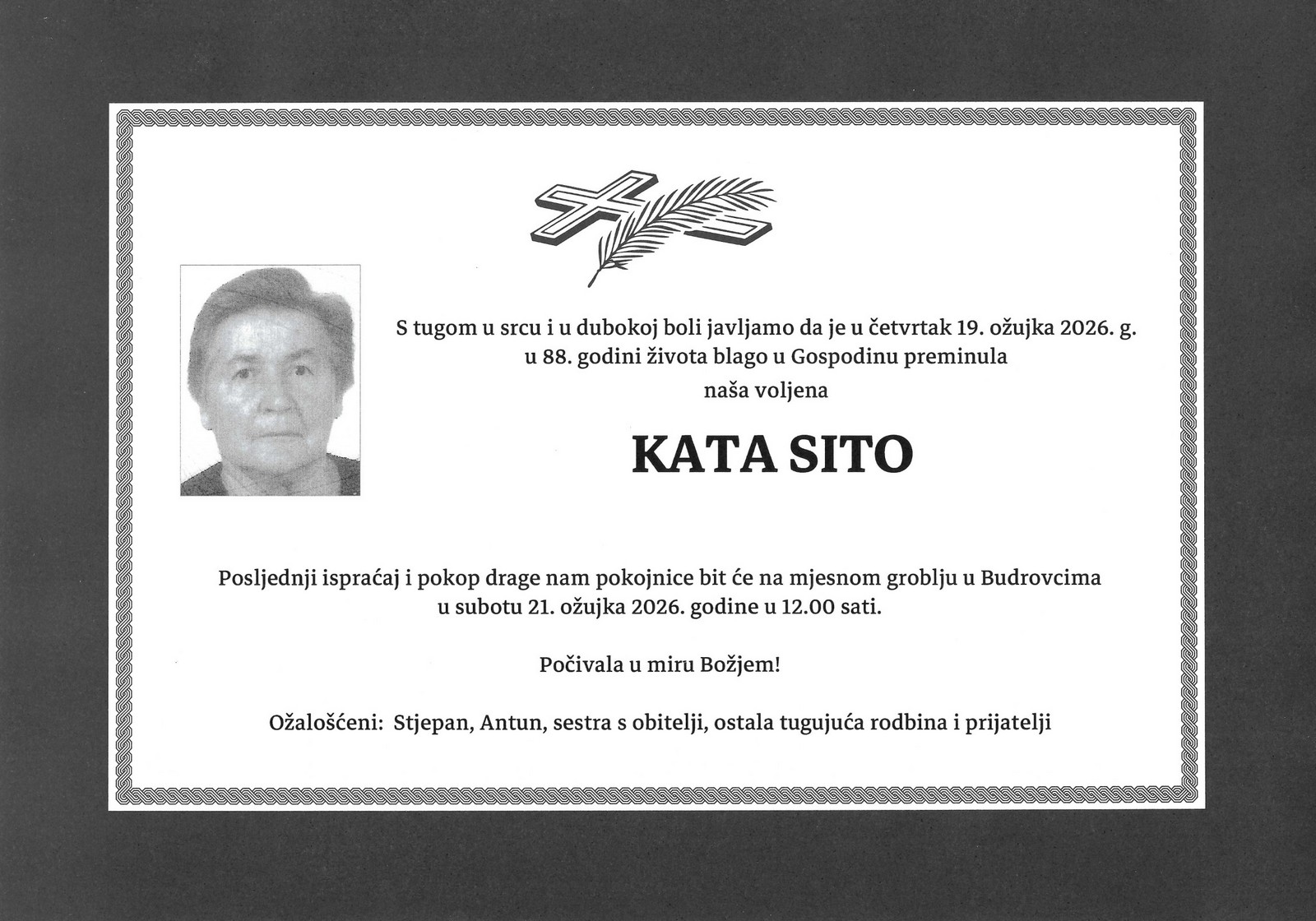 12 sati: KATA SITO (87) osmrtnica